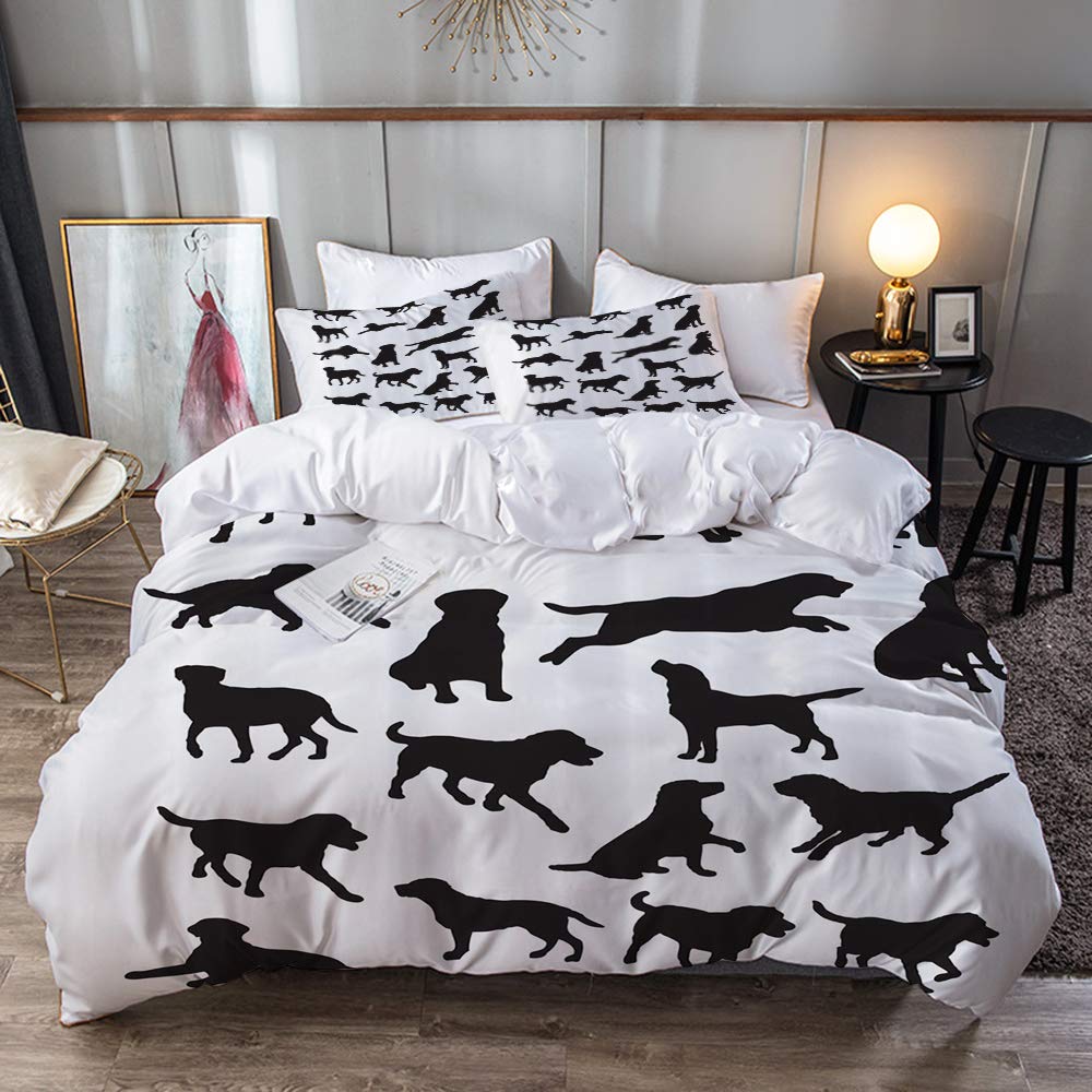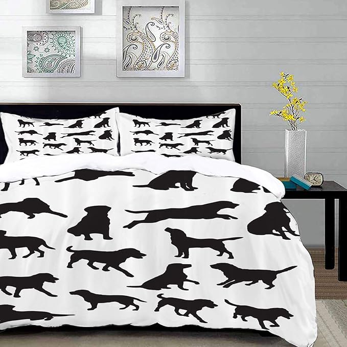 مجموعة الفراش لابرادور صورة ظلية سوداء للحيوانات الأليفة في مواقع مختلفة غطاء لحاف واحد وسائد 50 80 سم Buy Online At Best Price In Uae Amazon Ae