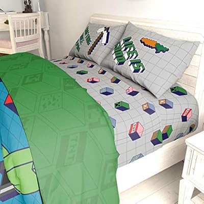 طقم سرير مزدوج من 4 قطع من Jay Franco Minecraft Survive يتضمن طقم لحاف وملاءة بوجهين بوليستر فائق النعومة مقاوم للبهتان منتج ماين كرافت الرسمي Amazon Ae