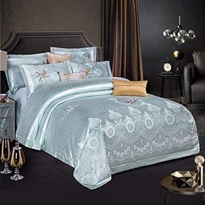 مجموعات فراش مطرزة فاخرة مجموعة غطاء لحاف من الساتان الجاكار الحريري قطن حريري رومانسي رائع طباعة دانتيل رومانسية ناعمة حريرية 4 قطع غطاء لحاف فضي King Amazon Ae