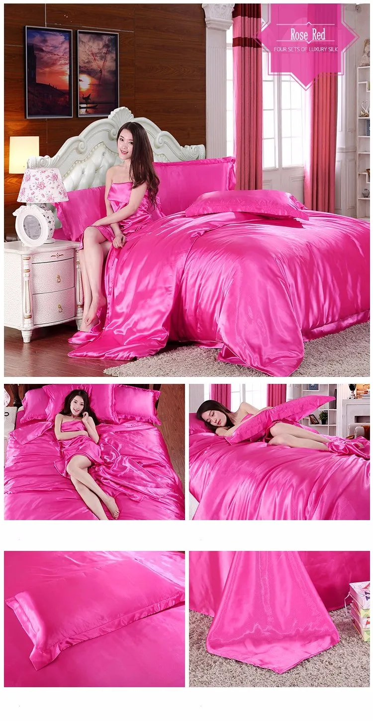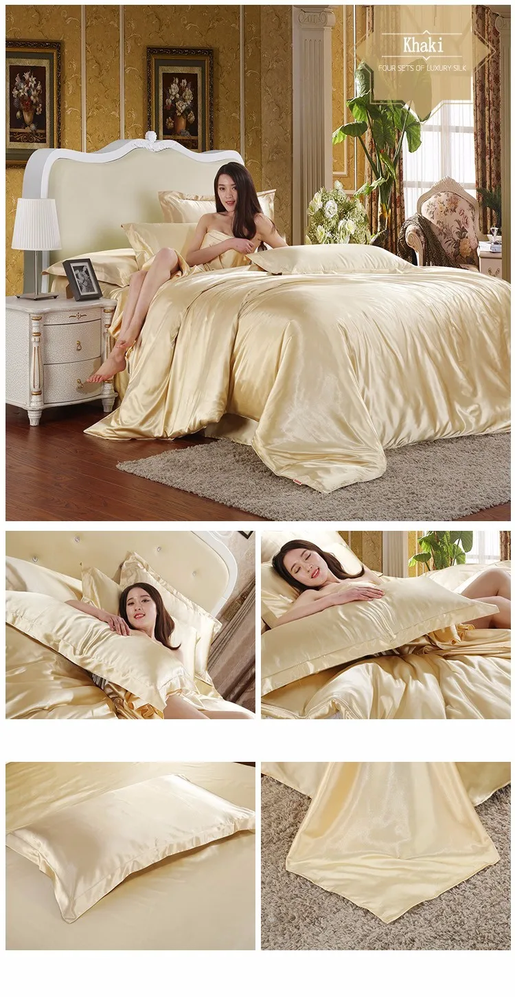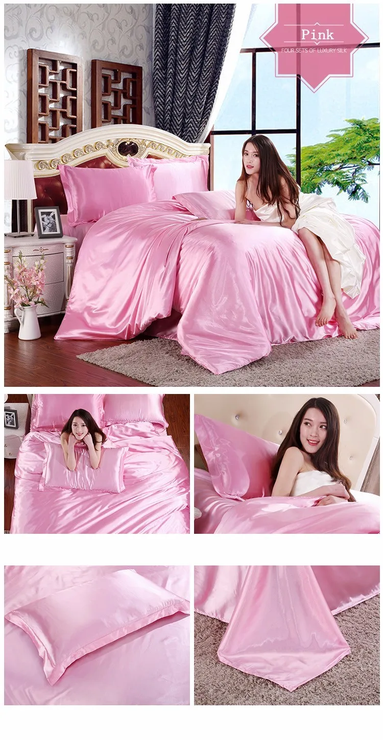 الساتان الأسود الحرير الفراش مع غطاء لحاف السرير ورقة وسادة غطاء فاخر الحرير الفراش أغطية السرير الملك الملكة التوأم حجم في مجموعات الفراش من المنزل والحديقة على Shop Nbyl Me Store