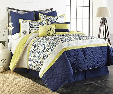 Lyla من 8 قطع من مجموعة اللحاف بطانية Denim Ivory Queen Amazon Ae
