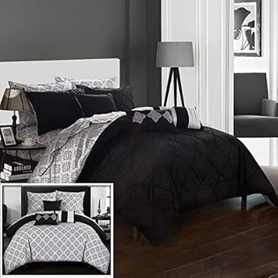 10 قطع من Chic Home قطعة واحدة من حبل Maddie مثل خياطة مضغوطة يلبس على الوجهين كبيرة الحجم Overfilled مقاس King للسرير في حقيبة مجموعة لحاف واحد باللون الأزرق Black