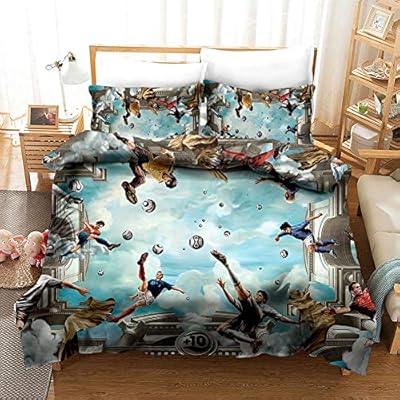 طقم لحاف للأطفال المراهقين 3 قطع من Vampsky 3d Football Star Sports طقم لحاف ولحاف ومقاس كامل 3 قطع 1 لحاف 2 كيس وسادة مجموعة لحاف من الألياف الدقيقة للأطفال مع كيس