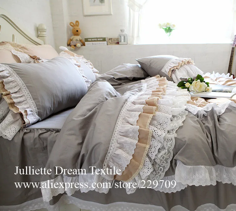 كبار الفاخرة كعكة طبقات طقم سرير غطاء لحاف كشكش الدانتيل تنورة نوم التطريز الأوروبي نوم النسيج المخدة أنيقة بيع في مجموعات الفراش من المنزل والحديقة على Agustinosgranada Club Store