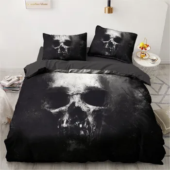 الفاخرة الفراش مجموعات 3d مخصص مجموعة غطاء لحاف الملكة الملك لحاف بطانية مجموعة غطاء 3 قطعة السرير Se الأسود و الأبيض الجمجمة أغطية سرير Leather Bag