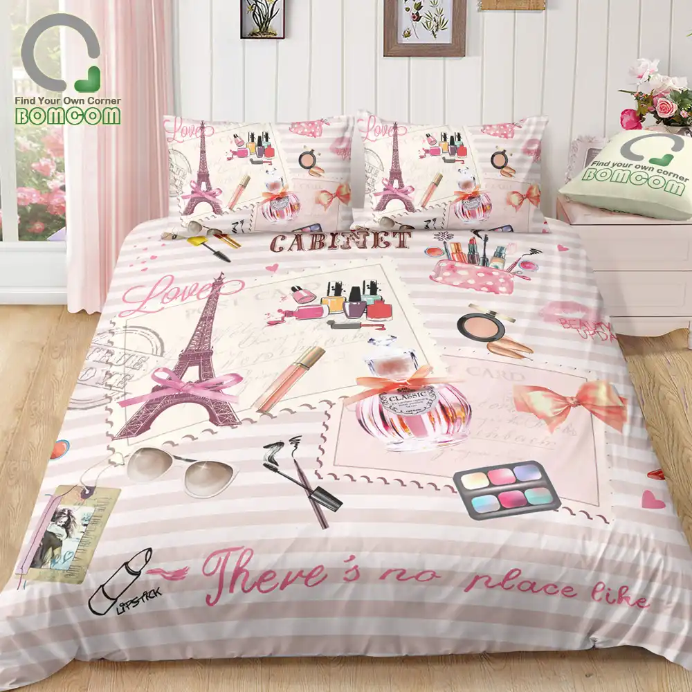 Bomcom 3d الرقمية الطباعة حاف مجموعة غطاء التجميل موضوع رومانسية باريس أزياء سيدة الحديثة فتاة طقم سرير 100 ستوكات Aliexpress