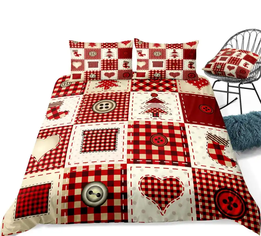 عيد الميلاد حاف مجموعة غطاء أشجار عيد الميلاد و الجوارب طقم سرير الحب الأحمر الفراش الاطفال الفتيان الفتيات الملكة المنسوجات المنزلية 3 قطعة دروبشيب مجموعات الفراش Gooum