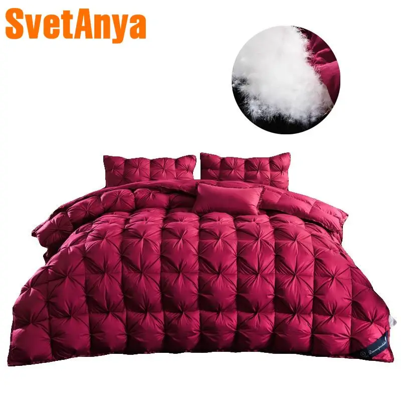 ثلاثية الأبعاد الفاخرة الأحمر خياطة حاف الحدود سميكة الشتاء المعزون القطن الأبيض بطة أوزة أسفل حشو الملكة الملك الحجم لحاف بطانية في ألحفة ومفارش من المنزل والحديقة على Www Unohama Club Store