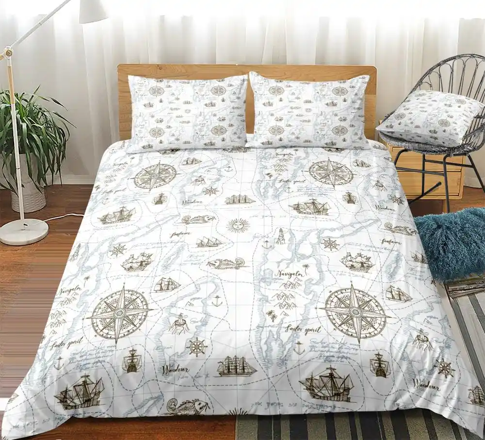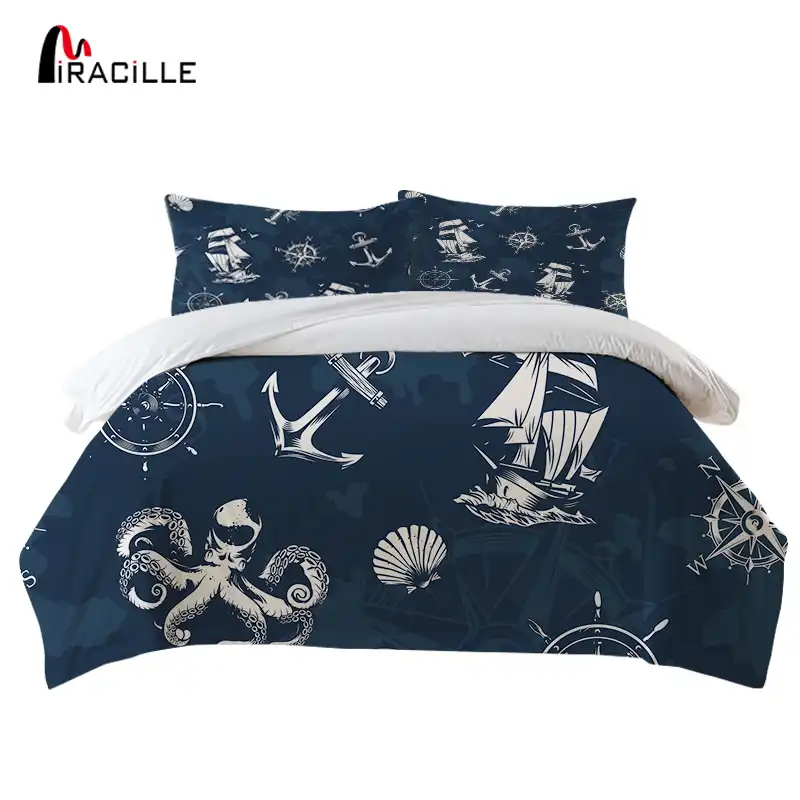 البوصلة حاف مجموعة غطاء الملكة المراكب الشراعية الصبي طقم سرير عنصر البحرية قذيفة غطاء لحاف الأسماك 100 ستوكات خمر المفارش مجموعات الفراش Zawem
