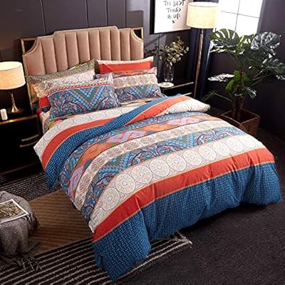 مجموعة أغطية السرير المخططة ذات الطباعة العرقية للفنادق ذات الجودة الشتوية السميكة تتضمن 1 غطاء لحاف و2 كيس وسادة و1 6 ملاءة ناعمة وخفيفة الوزن سهلة العناية من القطن المضاد للحساسية 180 220cm Amazon Ae