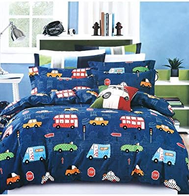 غطاء لحاف للأطفال سرير فردي مزدوج مجموعة سرير مطبوعة على الوجهين للأولاد والبنات تتضمن كيس وسادة مطابق Besbomig اصطناعي ازرق Double 200 200cm 2x 50 75cm Amazon Ae