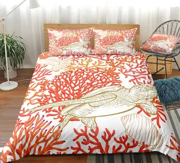 السلاحف طقم سرير المحيط المرجان حاف مجموعة غطاء البحر الحياة المفارش الاطفال المراهقين المنسوجات المنزلية ستوكات أغطية سرير الفراش البرتقا Leather Bag