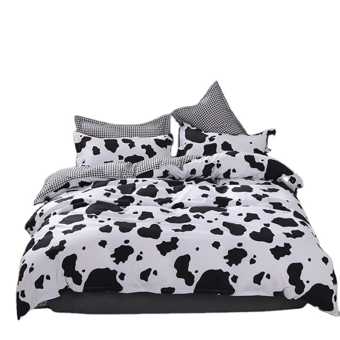 مجموعات السرير اغطية اللحاف مجموعة ملاءات سرير 4 قطع ديكور منزلي مجموعات لحاف نقش بقر أسود وأبيض تتضمن 1 غطاء لحاف 1 ملاءة سرير 2 كيس وسادة بوليستر Twin Size Amazon Ae