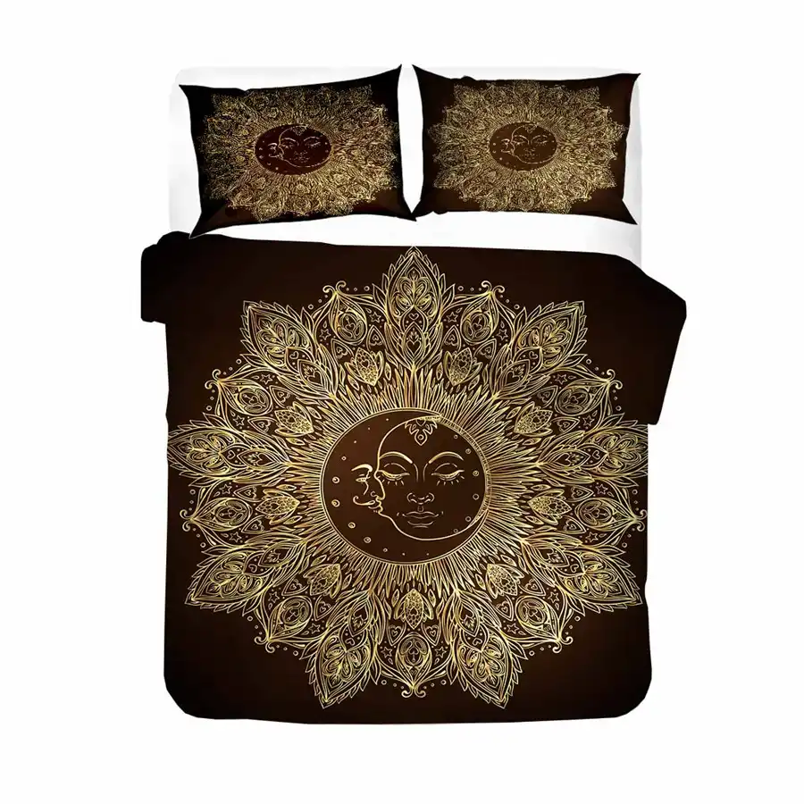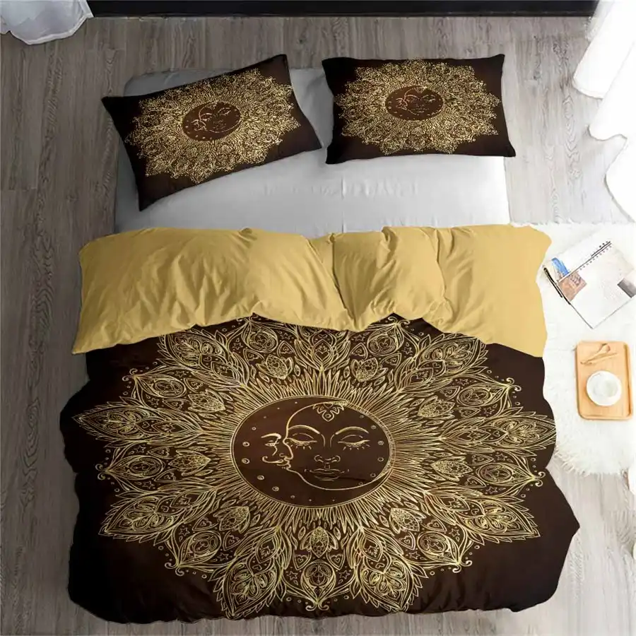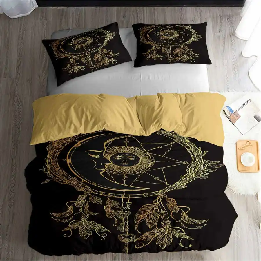 طقم سرير ثلاثية الأبعاد الذهب القمر مرافقة الشمس لينة حاف الغطاء مع المخدة الأسود الظلام طقم سرير S الملك الحجم غطاء لحاف البوهيمي غطاء اللحاف Aliexpress