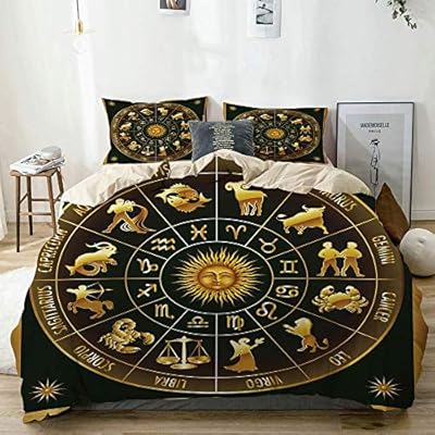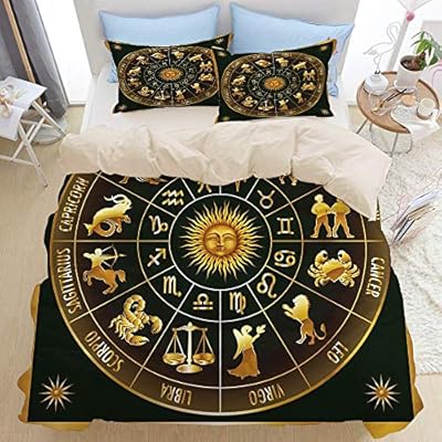 مجموعة غطاء لحاف Duvets البيج علامات عجلة زودياك علم التنجيم في دائرة مع صورة القمر الشمس في دائرة مجموعة غطاء لحاف من الألياف الدقيقة مع 2 كيس وسادة 50