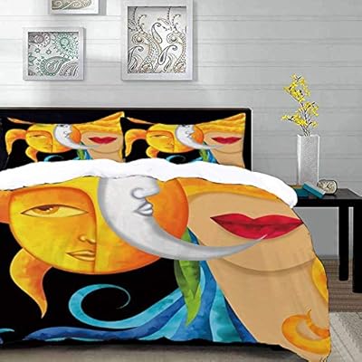 مجموعة الفراش الشمس والقمر المرأة ابتسامة أحمر الشفاه السحرية الجو الكون الكون في الوئام ديكور موضوع متعدد الألوان غطاء لحاف واحد وسائد 50 80 سم Amazon Ae