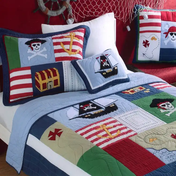 شحن مجاني طقم سرير سفينة القراصنة الأطفال الكرتون فايكنغ قارب خليط زين التطريز المفارش مجموعة في حقيبة Bedclothes Set Bedding Setbedding Set Children Aliexpress