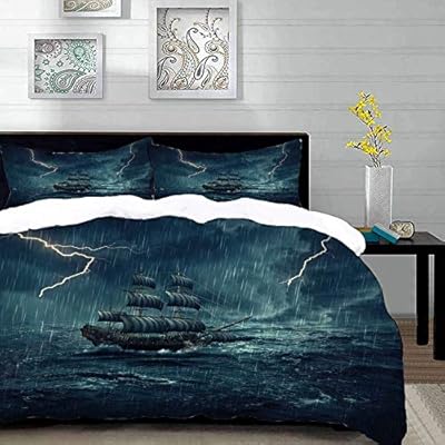 مجموعة الفراش صور الطبيعة عاصفة ممطرة أمواج الطقس القراصنة السفينة السفينة الشراعية الطلاء النفط الأبيض والأسود كاديت الأزرق غطاء لحاف واحد وسائد 50 80 سم Buy Online