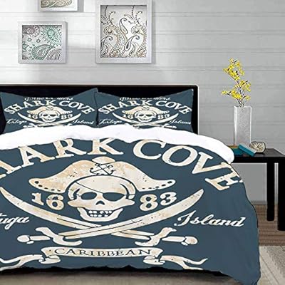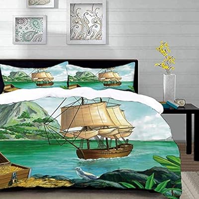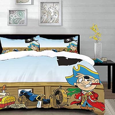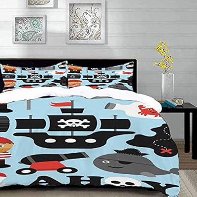 الفراش مجموعة غطاء اللحاف القراصنة مضحك بايرت بوي كيد أون سفينة رحلة مغامرة خطيرة في مجهول وا مجموعة غطاء لحاف من الألياف الدقيقة لا تسبب الحساسية مع 2 كيس وسادة 50 8