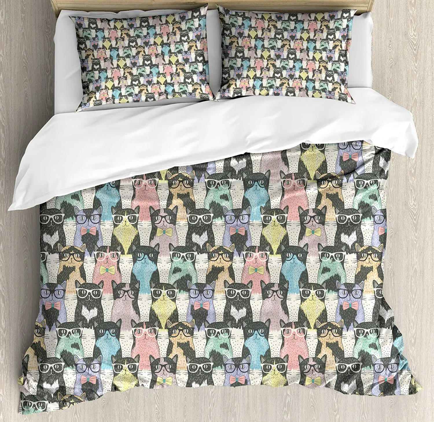 القط مجموعة غطاء لحاف نمط مع محب شخصيات القطط لعوب مع النظارات و بووتيس خمر نمط ديكور 3 قطعة السرير غطاء اللحاف Aliexpress