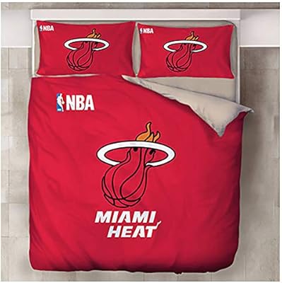 مجموعة مفروشات ميامي هيت مجموعة أحمر 3d شعار فريق كرة السلة Nba 100 بوليستر ناعم ومريح قابل للغسل مجموعة غطاء لحاف كرة السلة مع أغطية وسادات للمراهقين الأولاد الرياضة أفضل هدية Californiaking 4pcs