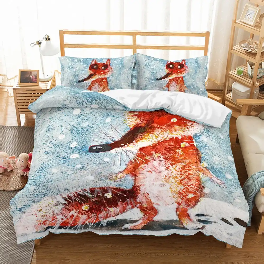 طقم سرير الثلج الكرتون الثعلب القرش الاطفال حاف مجموعة غطاء المخدة الأسرة أغطية سرير مجموعة 2 3 قطعة التوأم كامل الملكة الملك المفارش Aliexpress