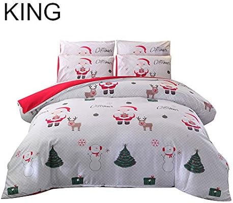 مجموعة غطاء لحاف السرير 2 3 قطع عيد الميلاد سانتا رجل الثلج شجرة الأيل طباعة لينة غطاء لحاف غطاء وسادة القضية ابيض King 230x260 3pcs Amazon Ae