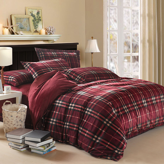 الحديث مخملية حمراء منقوشة الكامل 4 قطعة غطاء لحاف مجموعة 509288 2020 84 31
