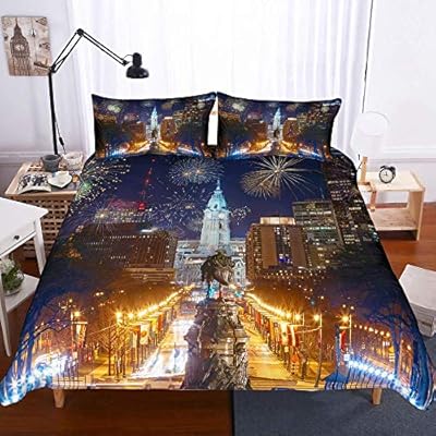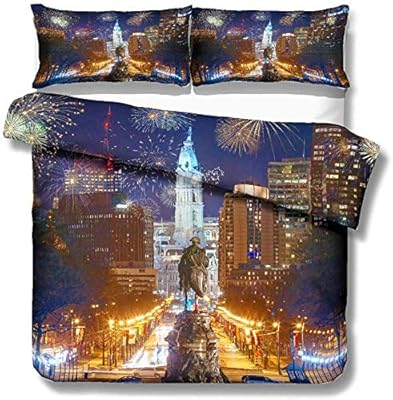 مجموعة الفراش 3d مدينة لوس أنجلوس نيويورك سيدني بناء الملعب شخصية نمط غطاء لحاف وغطاء وسادة متعدد الألوان غرفة النوم لوس أنجلوس فردي Single Amazon Ae