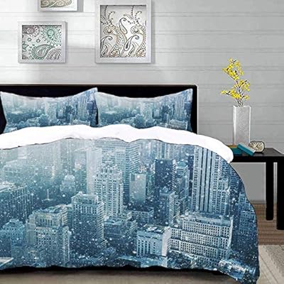 مجموعة الفراش شتاء ثلج في مدينة نيويورك Image Skyline With Urban Skyscrapers In Manhattan الولايات المتحدة الأمريكية غطاء لحاف واحد وسائد 50 80 سم Buy Online At Best Price In Uae Amazon Ae
