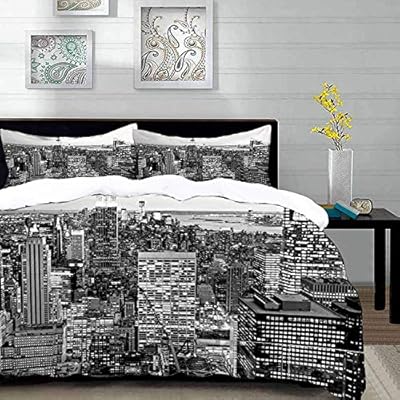مجموعة الفراش نيويورك بانوراما بسبب منهاتن البنايات المرتفعة بسبب المدينة أثر باق الولايات المتحدة الأمريكية أسود و أبيض صور رمادي غطاء لحاف واحد وسائد 50 80 سم Amazon Ae