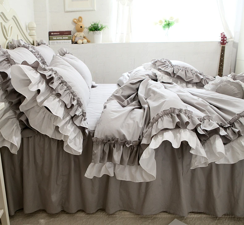 جديد الأوروبي طبقات مزدوجة طقم سرير كشكش لحاف لتغطية الفراش التجاعيد المفرش غطاء سرير لملابس الزفاف السرير الزخرفية في مجموعات الفراش من المنزل والحديقة على Agustinosgranada Club Store