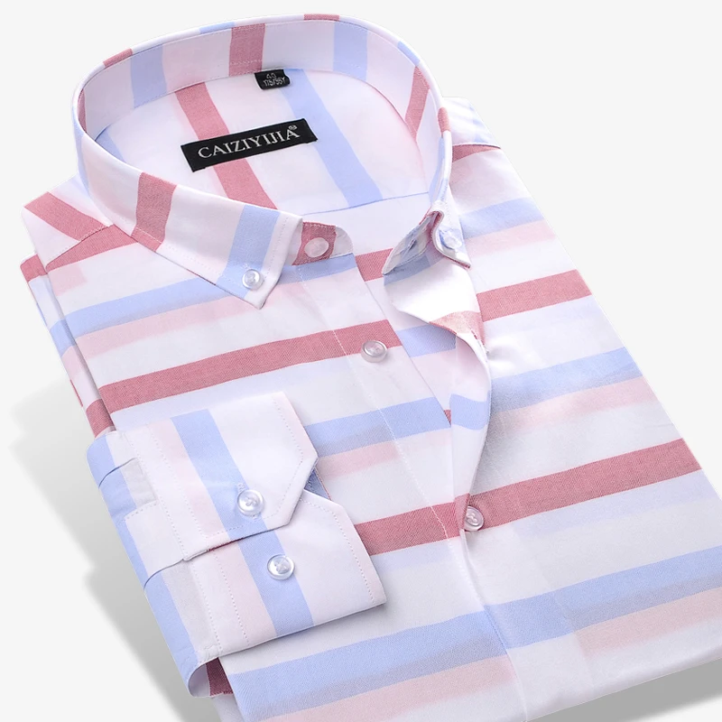 الرجال اللون كتلة مخطط فستان قميص مريح القطن طويل الأكمام عادية القياسية صالح زر أسفل القمصان في قمصان من ملابس الرجال على Splendex Store Store