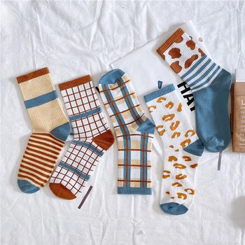 النساء جوارب قطنية اللون الرجعية الجوارب الطويلة الجديدة تنفس مريحة البرية Harajuku مخطط السيدات الجوارب Leather Bag