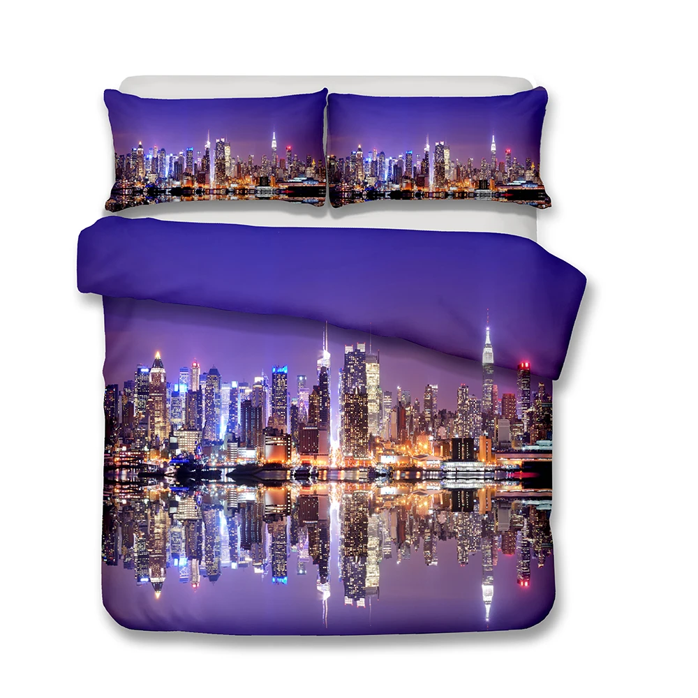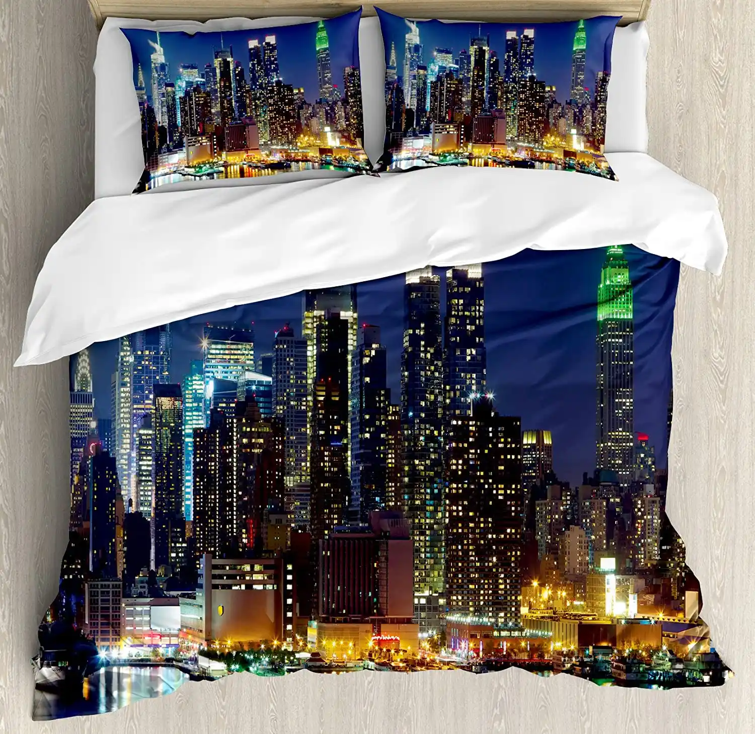 نيويورك حاف مجموعة غطاء للرؤية الليلية Hd مع الغسق السماء غائم الغروب في مدينة الموضة كابيتال الفن صور طقم سرير الملكة الحجم الأزرق غطاء اللحاف Aliexpress
