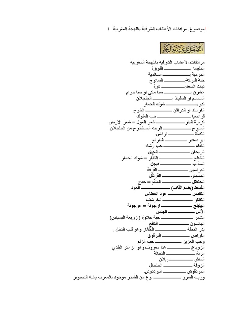 مرادفات الأعشاب الشرقية باللهجة المغربية