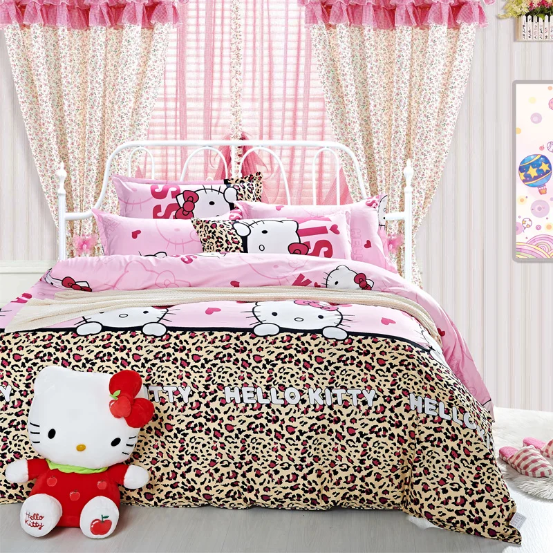 100 القطن الحلو جميل مرحبا كيتي الفراش مجموعات التوأم الملكة الملك حجم القط الوردي غطاء لحاف السرير ورقة مسطحة المخدة أغطية Aliexpress