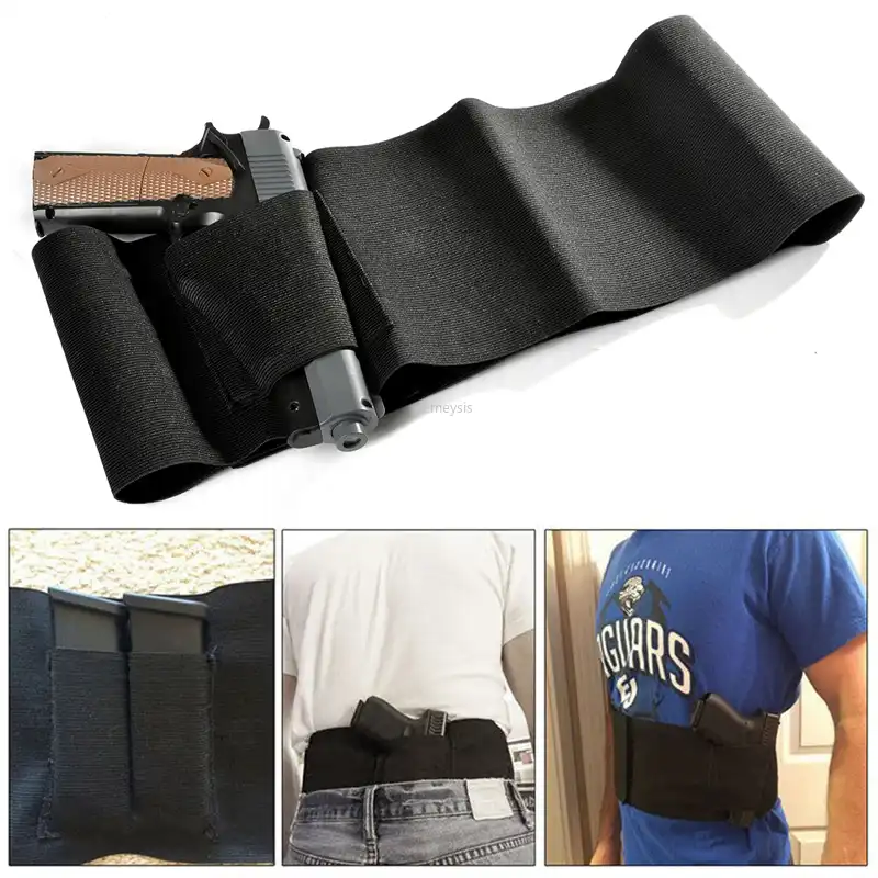 أخفى تحمل حزام بطن مسدس الحافظة مطاطا البطن المعدة الفرقة مسدس الحافظة مع 2 مجلة الحقائب Leather Bag