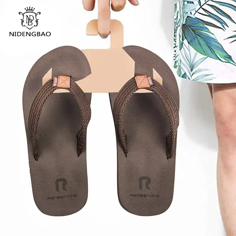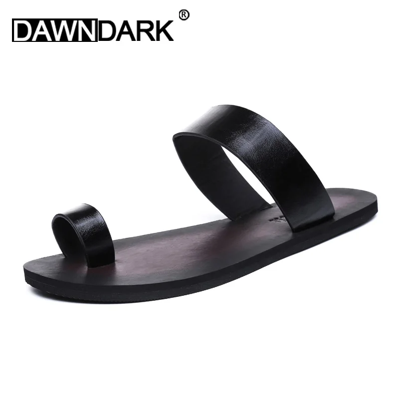 شبشب رجالي عادية الصيف رجل صنادل شاطئ بولي Leather جلد الوجه بالتخبط شقة في الهواء الطلق مريحة أسود الذكور أحذية رياضية لينة في شباشب من أحذية على Buy Unohama Club Store
