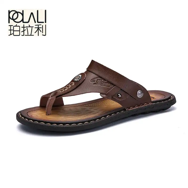 Polali الرجال الصنادل حقيقية انقسام الجلود الرجال صنادل شاطئ ماركة الرجال حذاء كاجوال الوجه يتخبط شبشب رجالي أحذية رياضية الصيف أحذية العلامة التجارية أحذية عارضةالأحذية الوجه بالتخبط Aliexpress