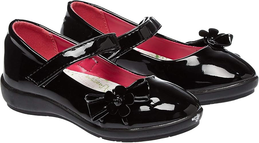 حذاء ماري جين بزينة فيونكة وشريط إغلاق زهري