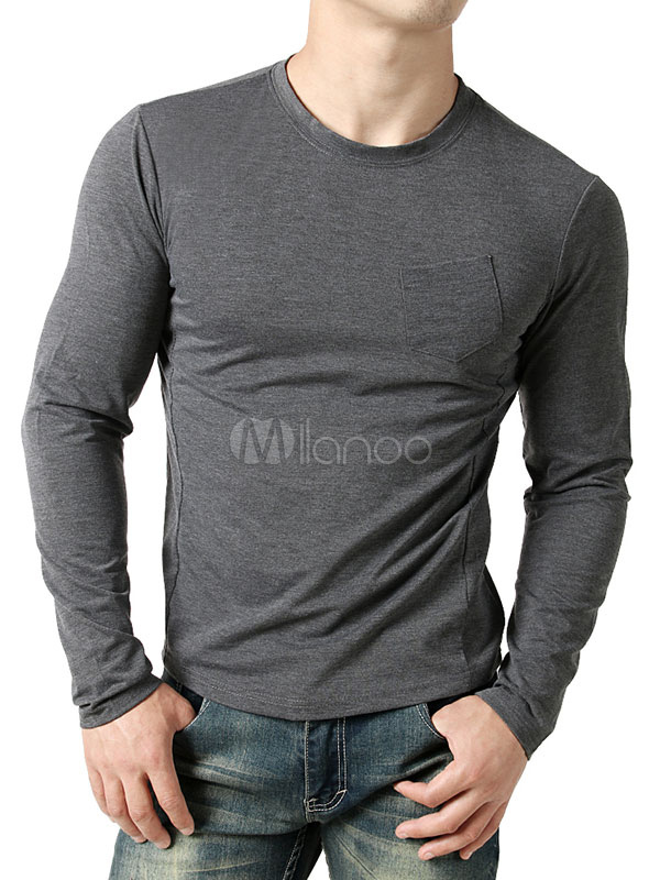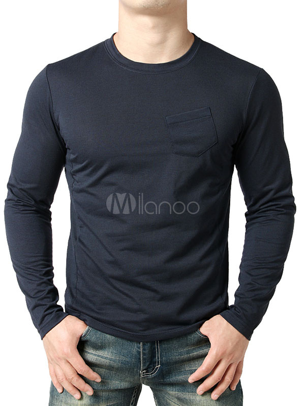 قميص طويل الأكمام تي شيرت الرجال القطن قاعدة جيب مريح تي شيرت Milanoo Com