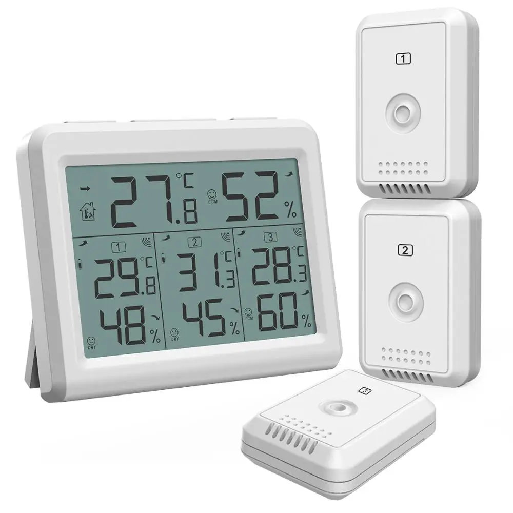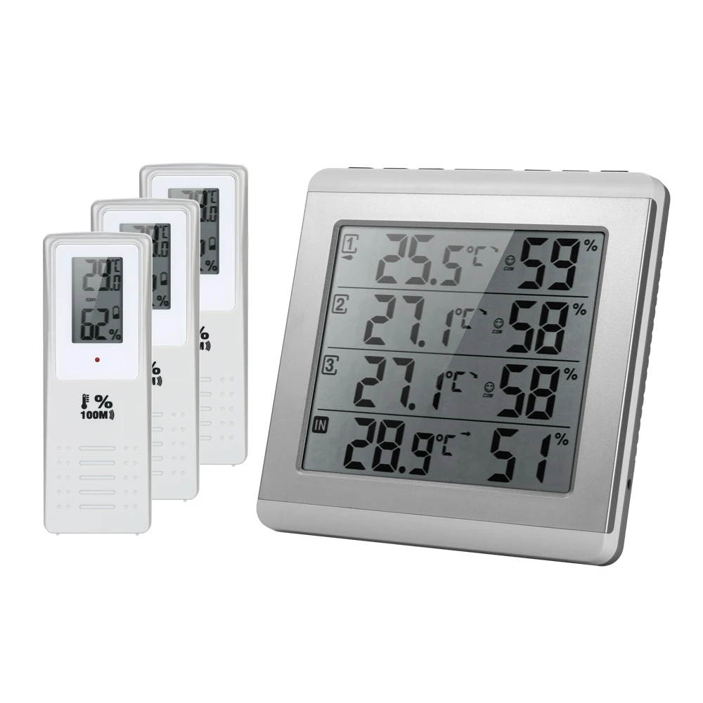 الرقمية في الأماكن المغلقة مقياس حرارة خارجي الرطوبة أربعة قناة مقياس الرطوبة درجة الحرارة مع 3 مستوى الراحة الارسال في الهواء الطلق في أجهزة قياس درجة الحرارة من أدوات على Buy Unohama Club Store
