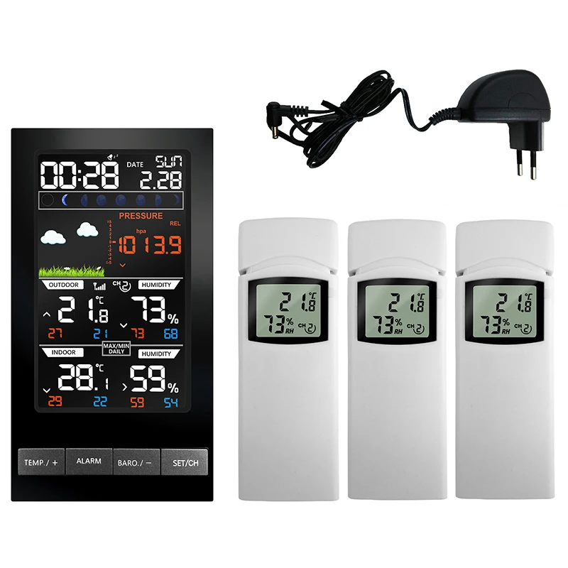 3 في الهواء الطلق أجهزة الاستشعار محطة الطقس اللاسلكية درجة الحرارة الرطوبة شاشة الكريستال السائل Mmhg مقياس الضغط الطقس توقعات ساعة ميزان الحرارة في أجهزة قياس درجة الحرارة من أدوات على Www Unohama Club