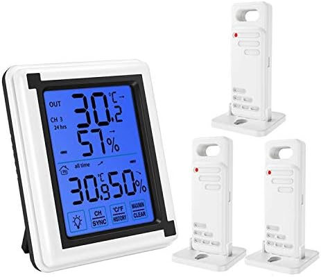 جهاز قياس الرطوبة رقمي رقمي رقمي رقمي رقمي لرمود الحرارة في الهواء الطلق مع شاشة لمس Lcd الخلفية مقياس درجة الحرارة 200 قدم 60 متر نطاق لاسلكي ثيرموميتر Amazon Ae