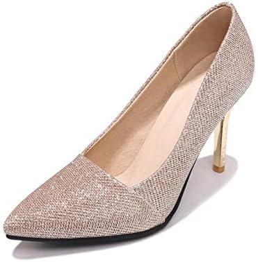 مضخات للنساء 8 5 سم 3 34 بوصة كعب ستيليتوس الانزلاق في مقفلة إصبع القدم مدبب الترتر براءات الاختراع الجلود الاصطناعية المطاط الوحيد غير زلة الأزياء أحذية مريحة عصرية ذهبي 34 Eu Amazon Ae