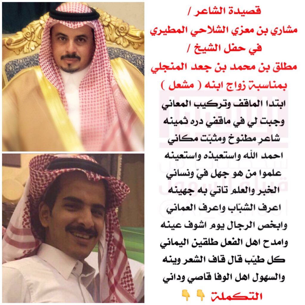 شخصيات قبيلة السهول A Twitter قصيدة الشاعر مشاري بن معزي الشلاحي المطيري في حفل الشيخ مطلق بن محمد ابن جعد المنجلي بمناسبة زواج ابنه مشعل Https T Co E8mttjdusr