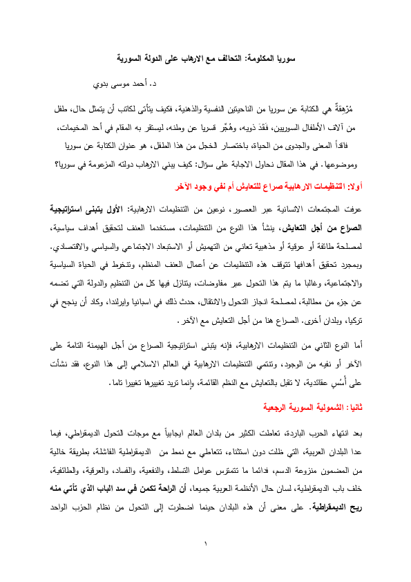 Pdf Alliance With Terrorism Against The Syrian State سوريا المكلومة التحالف مع الارهاب على الدولة السورية Ahmed Mousa Badawi Academia Edu