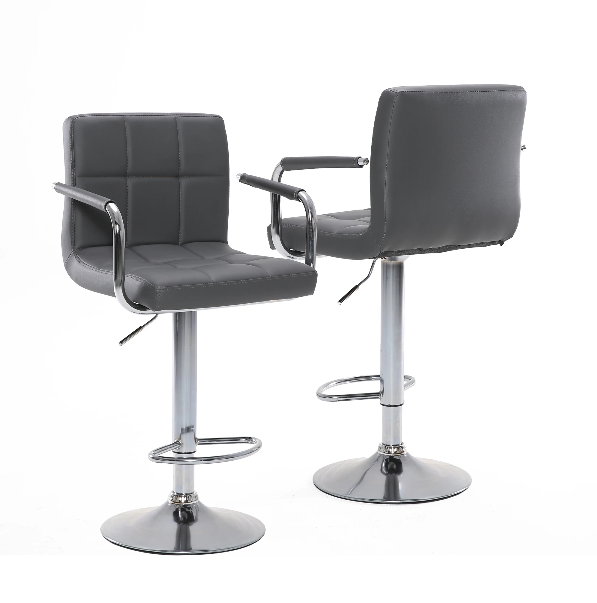 طقم من 2 مقعد بار للمطبخ كراسي من البولي يوريثان مقاعد منزلية مع مساند للذراعين مساند ظهر مريحة مقعد قابل للتعديل قدم معدنية رمادي كراسي الغداء Aliexpress