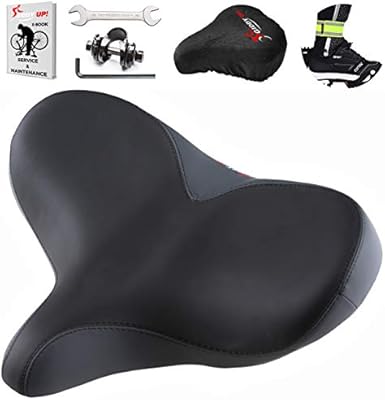 مقعد دراجة مقاعد دراجات مريحة للرجال والنساء مقعد دراجة عالمي مقاوم للماء سرج دراجة إسفنجي ذو ذاكرة مزدوجة لامتصاص الصدمات مع أدوات تركيب حزام عاكس قطعتان Amazon Ae